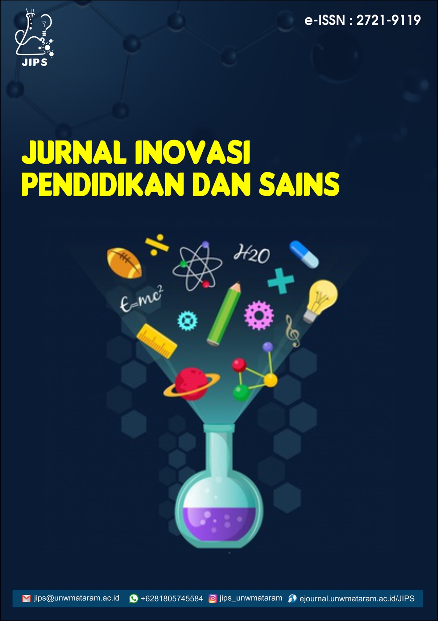 Jurnal Inovasi Pendidikan dan Sains (JIPS) ISSN Online : 2721-9119 merupakan wadah publikasi ilmiah bagi dosen, guru, mahasiswa dan peneliti dalam bidang Sains dan di bidang pendidikan Kimia, Fisika, Biologi dan Matematika. Semua manuskrip yang dikirimkan akan dikenakan proses review setelah dilakukan pemeriksaan menyeluruh oleh editor. Jurnal Inovasi Pendidikan dan Sains (JIPS) pertama kali terbitkan pada bulan Juni tahun 2020 oleh Lembaga Penelitian dan Pengabdian kepada Masyarakat (LPPM) Universitas Nahdlatul Wathan Mataram. Jurnal Inovasi Pendidikan dan Sains (JIPS) menerima artikel dalam Bahasa Indonesia dan Bahasa Inggris.